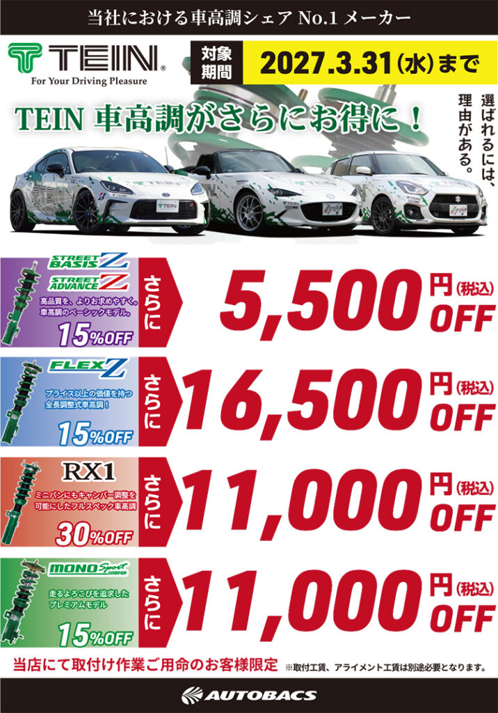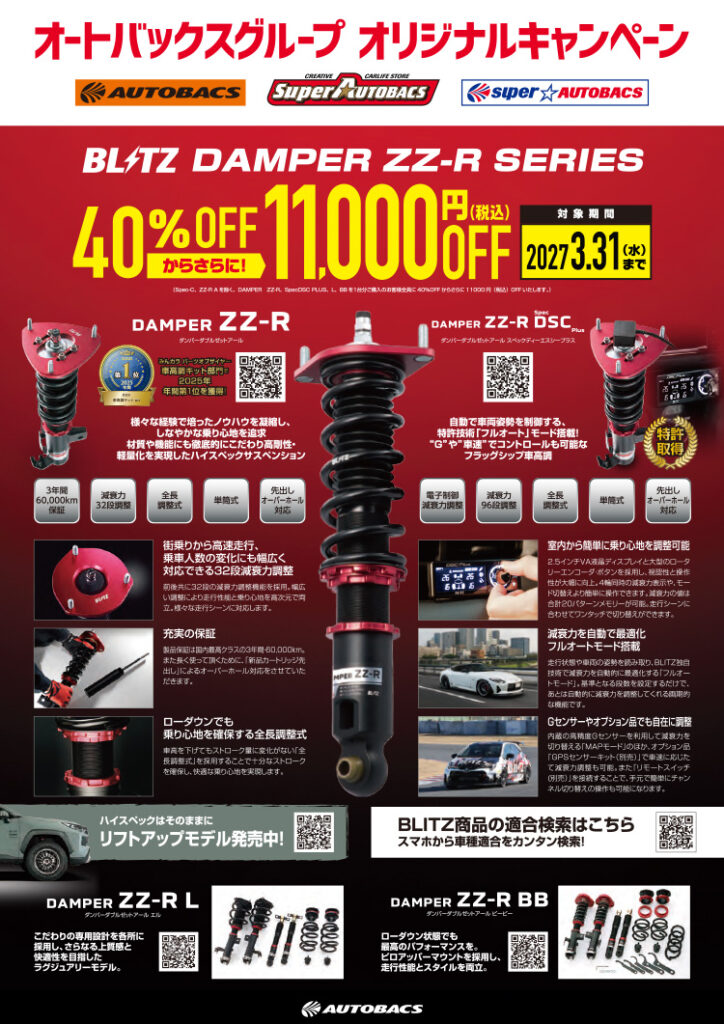 厳選された人気のチューニングパーツ&ドレスアップパーツが大集合!期間限定で愛車をお得にカスタムできるオートバックスヒートアップキャンペーンを2027年3月31日(水)まで実施中です。